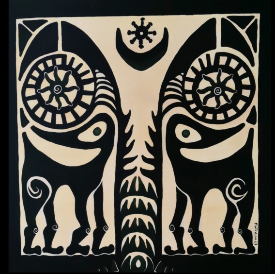 Obraz, niczym rytualna maska pradawnych zwierząt,